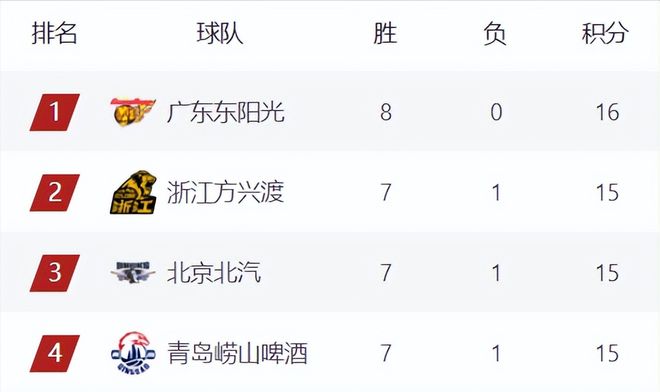 前四排名相較於上一輪,有了巨大的變動,廣東廣廈上升1位來到第1和第2,北京下滑2名來到第3,青島繼續穩居第4,下一輪廣東將和北京直接對話,這一場勝負關乎到廣東能否坐穩榜一位置,也關係到廣東、北京、廣廈、青島的前四排位順序。