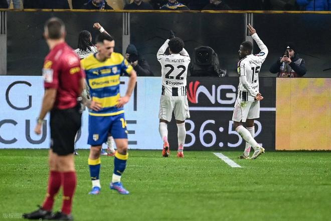 領先之後的尤文並未放緩進攻腳步,持續通過邊路傳中與中路滲透製造威脅。第37分鍾,卡盧盧右路送出精準斜傳,麥肯尼前插至禁區內,麵對來球完成精彩的淩空側鉤射門,皮球應聲入網,尤文將比分擴大為2比0。麥肯尼的進球兼具力量與技巧,既體現了他出色的跑位意識,也展現了中場球員的終結能力,半場結束前的這粒進球,讓尤文帶著兩球優勢進入更衣室,徹底掌握比賽主動權。